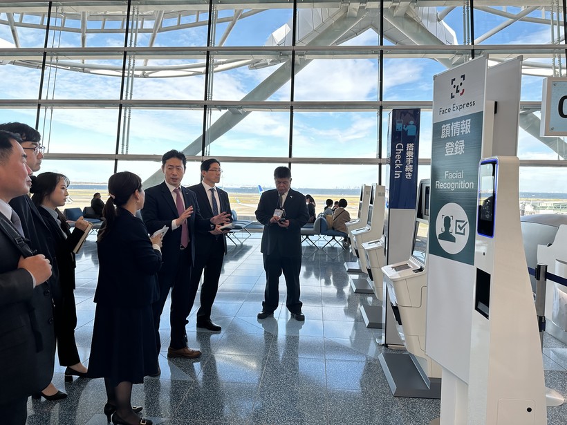 | ▲ 13일, 윤형중 한국공항공사 사장(오른쪽으로부터 3번째)이 하네다공항 제2터미널을 방문해 탑승수속 시설을 살펴보고 있다. (사진=한국공항공사) |