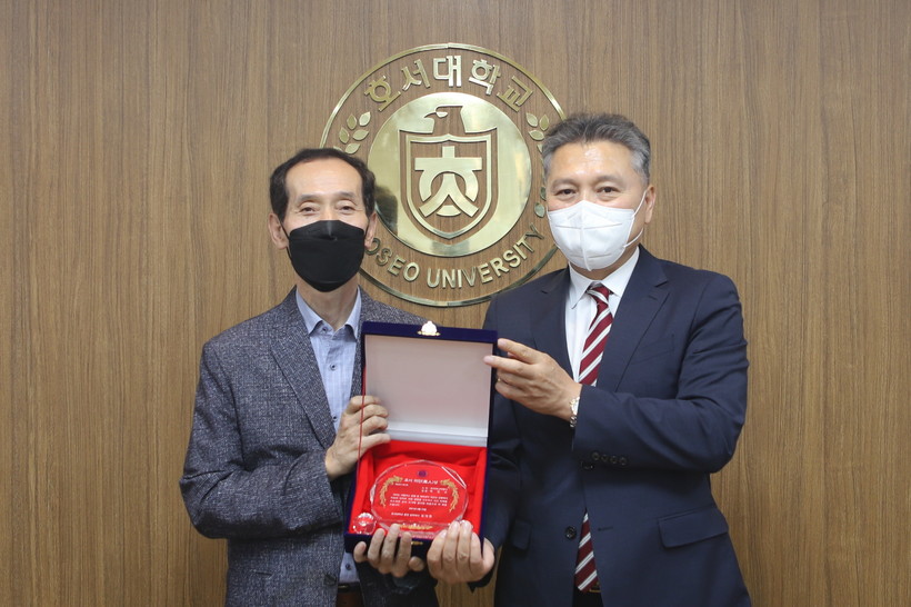 | ▲왼쪽부터 박진수씨, 김대현 총장.(사진=호세대학교 제공) |