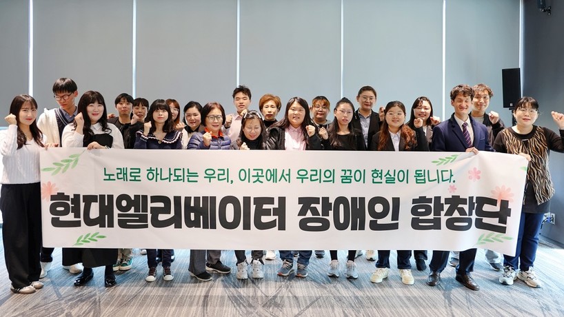 | ▲ 현대엘리베이터가 경중증 장애인 20명으로 구성된 ‘현대엘리베이터 장애인 합창단’을 창단했다고 28일 밝혔다.(사진=현대그룹 제공) |