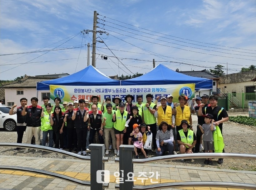 이날 국토교통부노조 최병욱 위원장을 비롯해 포항국토사무소 조합원(지회장 김무일)들은 포항 남구 냉천 일원에서 환장봉사단(단장 박정근), 포항플로깅(대표 김은희)과 함께 ‘수해대비 모래주머니 만들기’ 행사에 참석해 저지대 주택 재난에 대비했다.