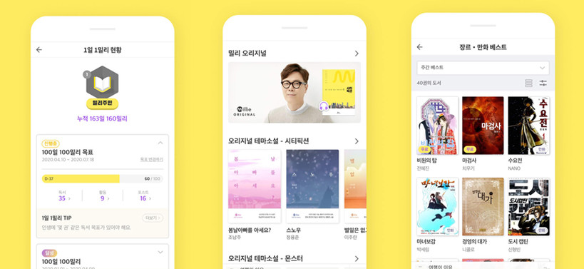 또 독서 문화를 이끄는 캠페인으로, 앱 이름에서 본딴 '밀리' 경험치를 적립해주는 '1일 1밀리' 서비스도 도입한다. 다양한 독서 콘텐츠를 이용해 구독자의 독서 목표를 달성하도록 돕는 형태다. 올 한해 독서량이 턱없이 부족하거나 늘 마음만 앞서고 실천을 못했던 사람들에게는 밀리의 서재만한 독서 스승이 없을 듯하다.