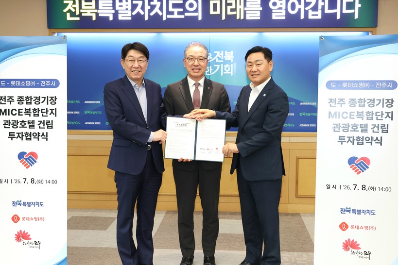 [일요주간 = 엄지영 기자] 롯데쇼핑이 전북 전주 도심에 4성급 관광호텔을 건립하기로 하고, 전북특별자치도 및 전주시와 3자 투자협약을 체결했다. 이번 사업은 롯데그룹의 지역 밀착형 투자 확대와 MICE(회의·포상관광·컨벤션·전시) 산업 인프라 강화 전략의 일환이다.