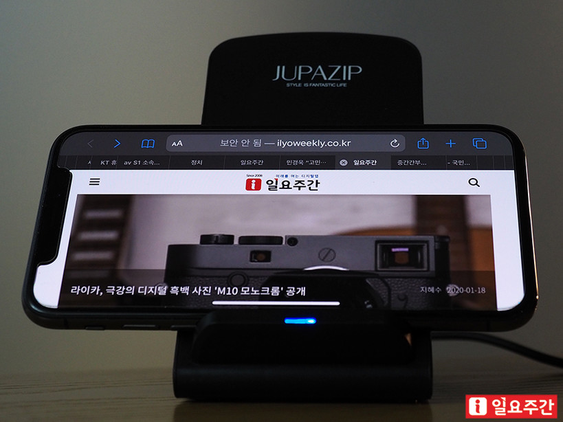 | ▲ 주파집 듀얼코일 고속 무선충전기 아이폰 충전모습 (사진=지혜수 기자) |