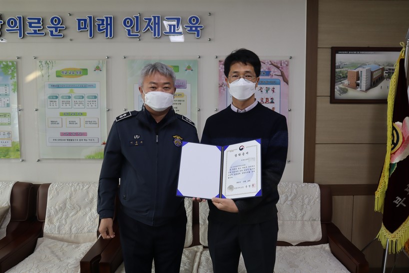| ▲ 밀양구치소는 15일 자매결연학교인 부북초교에 장학금 및 장학증서를 전달했다. 2011년부터 밀양구치소 직원들이 성금을 모으고 있으며, 마련된 성금으로 매분기 학업성적이 우수하고 교우 관계가 좋은 어린이 5명에게 총 100만 원을 지원하고 있다. (사진=밀양구치소) |