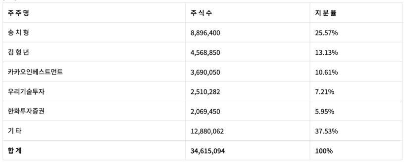 소비자주권시민회의에 따르면 지난해 12월 기준 두나무의 지분현황을 살펴보면 두나무 창업자 겸 회장 송치형 25.57%, 두나무 공동창업자 겸 부회장 김형년 13.13%, 카카오인베스트먼트 10.61%, 우리기술투자 7.21%, 한화투자증권 5.95%. 기타 37.53% 순으로 구성돼 있다.