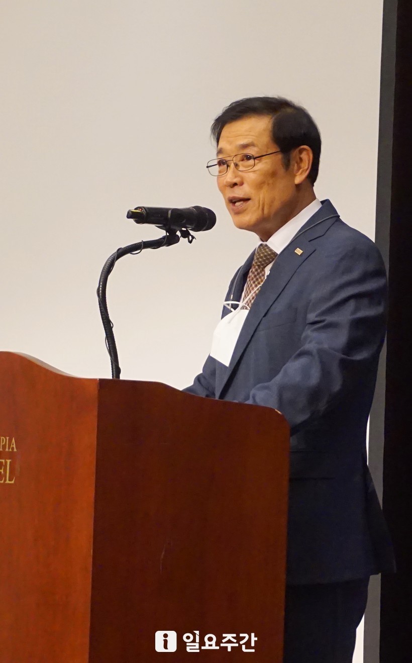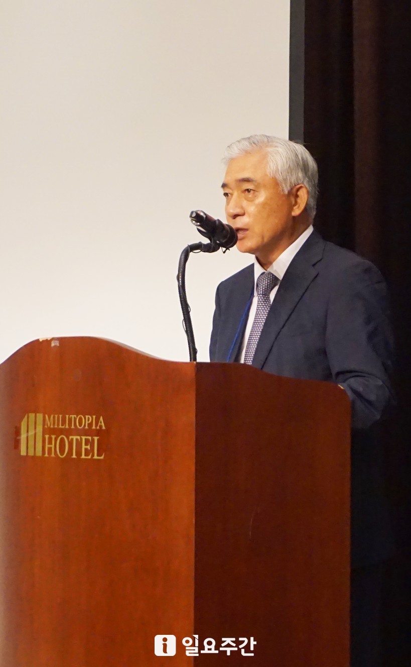 | ▲29일 오전 경기도 성남시 수정구 밀리토피아 호텔 그랜드볼륨에서 열린 한국국방안보연구소의 비전 선포식에서 박종헌 이사장이 참석자들에게 인사말을 전하고 있다. <사진=성지온 기자> |