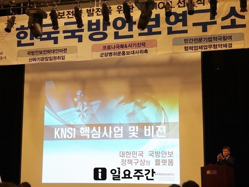 | ▲29일 오전 경기도 성남시 수정구 밀리토피아 호텔 그랜드볼륨에서 열린 한국국방안보연구소의 비전 선포식에서 전종찬 국방안보연구소 소장이 연구소의 핵심 사업과 비전을 발표하고 있다. <사진=성지온 기자> |