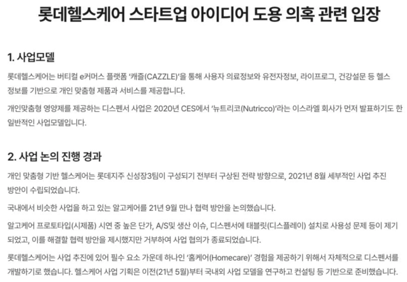 ▲롯데헬스케어가 홈페이지에 게재한 입장문. |
