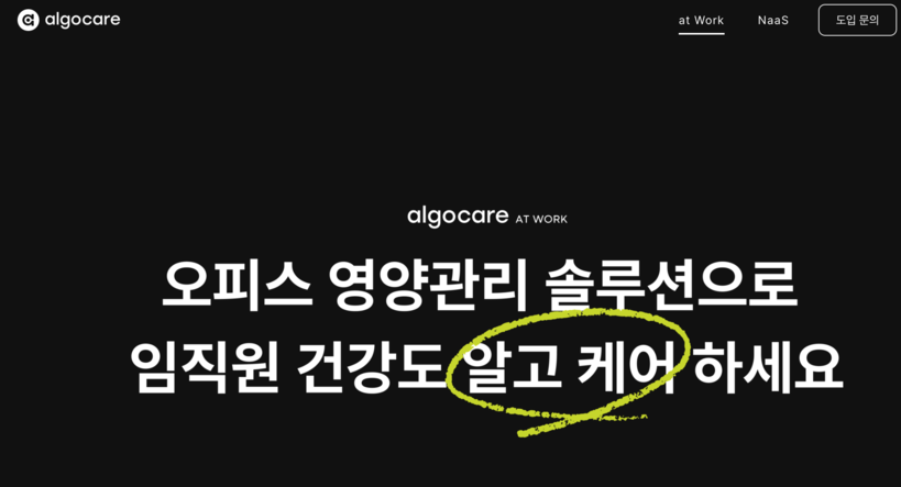 ▲스타트업 알고케어 홈페이지 갈무리. |