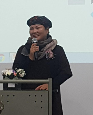 | ▲ 출판식에서 소감을 발표하고 있는 이필숙 여사 |