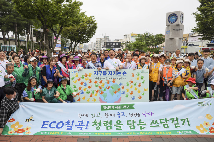 이날 새벽 7시, 김 군수는 왜관역 광장에서 진행된 ‘ECO 칠곡 쓰담걷기’에 참여해 공무원, 주민들과 함께 거리의 쓰레기를 줍고 무성하게 자란 잡초를 제거하며 구슬땀을 흘렸다. 새벽부터 시작된 활동은 말없이 민생을 살피는 군수의 의지를 상징하듯 조용하면서도 강한 울림을 남겼다.
