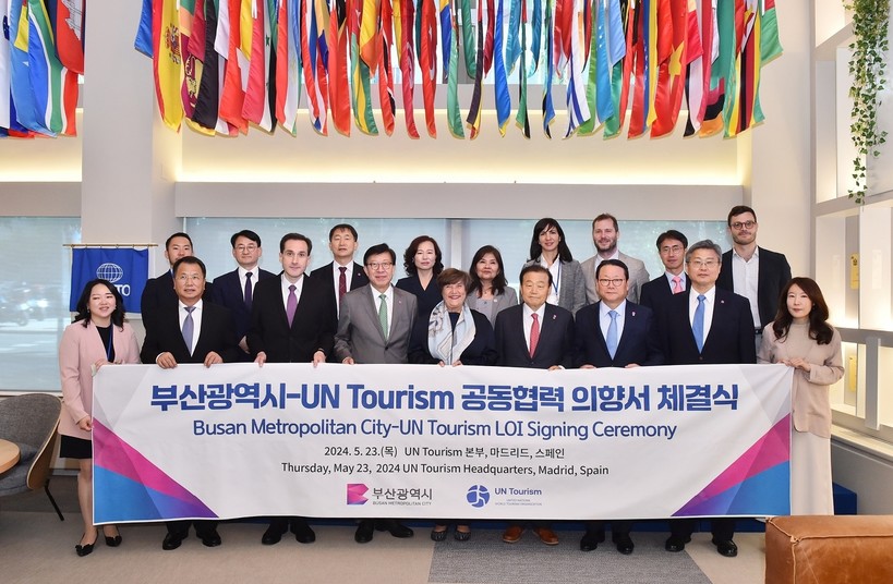 먼저, 부산시는 현지시각으로 23일 오전 10시(한국시각 오후 5시) 마드리드에 소재한 세계관광기구(UN Tourism) 본부에서 세계관광기구와 '지속가능한 관광 발전'을 위한 공동협력 의향서를 체결했다.