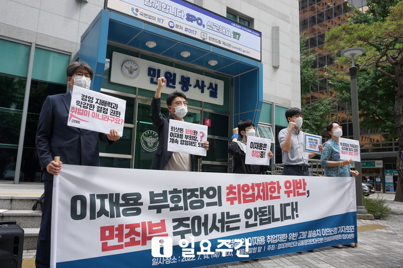 이날 노종화 경제개혁연대 변호사는 “상식적으로 보통의 임직원이라면 경제범죄를 저질러 회사에 중대한 피해를 줬다면 계속 재직하기 어려울 것이다. 하지만 계속 취업상태를 유지할 수 있는 사람들이 있다. 이 부회장과 같은 대기업 집단의 총수 일가와 지배주주들”이라면서 “취업제한 제도는 이러한 예외적인 분들을 위해 존재하는 제도라고 생각한다. 중대한 범죄를 저지른 경영진이 일정 기간 회사에 재직하지 못하도록 함으로써 재범을 방지하는 일종의 냉각기간”이라고 설명했다.