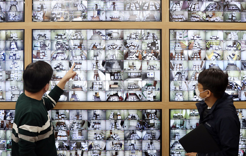 | ▲선관위 종합상황실에서 각 투표장을 CCTV로 감시중인 통합관제센터 (사진=뉴시스) |