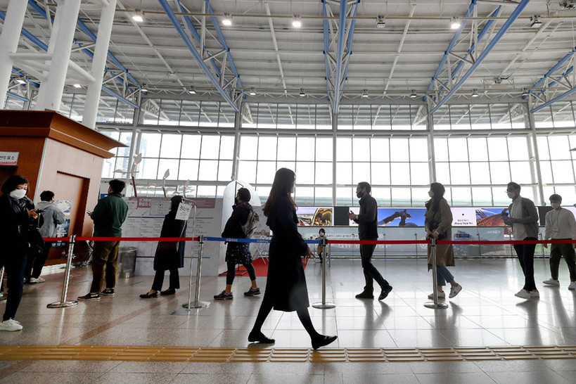 | ▲서울 용산구 서울역에 마련된 남영동 사전투표소에 줄선 유권자들 (사진=뉴시스) |