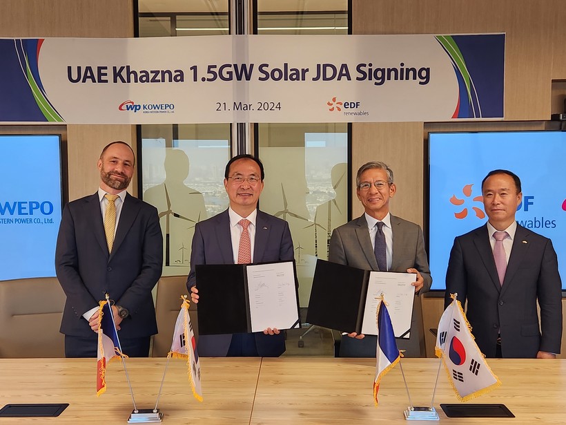 서부발전은 3월 21일(목‧현지시간) UAE 두바이에서 프랑스국영전력회사(EDF‧Electricite de France)의 신재생발전 자회사인 EDF-R(EDF-Renewables)과 ‘UAE 카즈나(Khazna) 1.5GW 태양광 입찰사업 공동개발협약’(JDA)에 서명했다.
