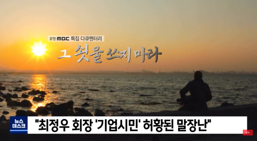 ▲포항MBC 다큐 ‘그 쇳물 쓰지 마라!’ 방영 관련 포스코 노조 반발에 대해 최정우 회장 정면 비판.(포항MBC 화면 캡처) |