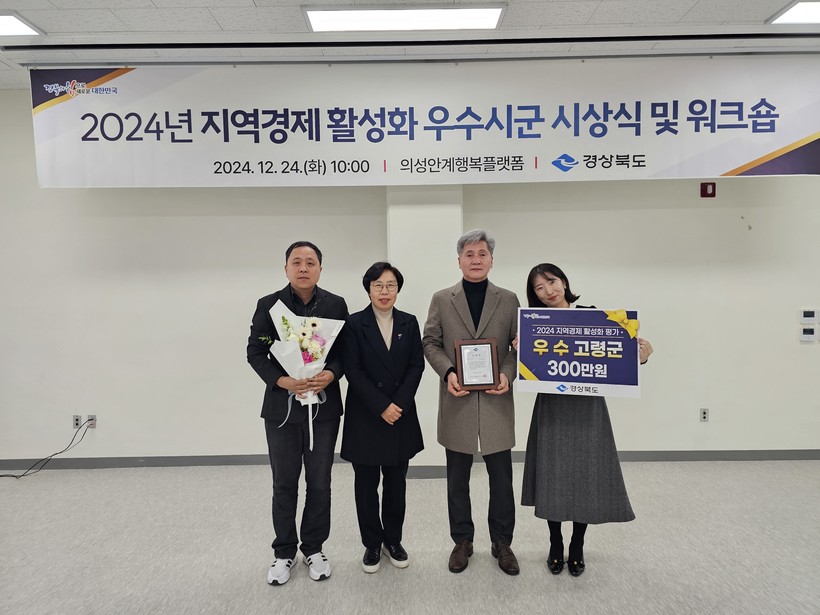 [일요주간=최부건 기자] 고령군은 지난 12월 24일 의성군 안계행복플랫폼에서 열린 2024년 ‘경상북도 지역경제활성화 평가’시상식에서 우수상을 수상하였다.