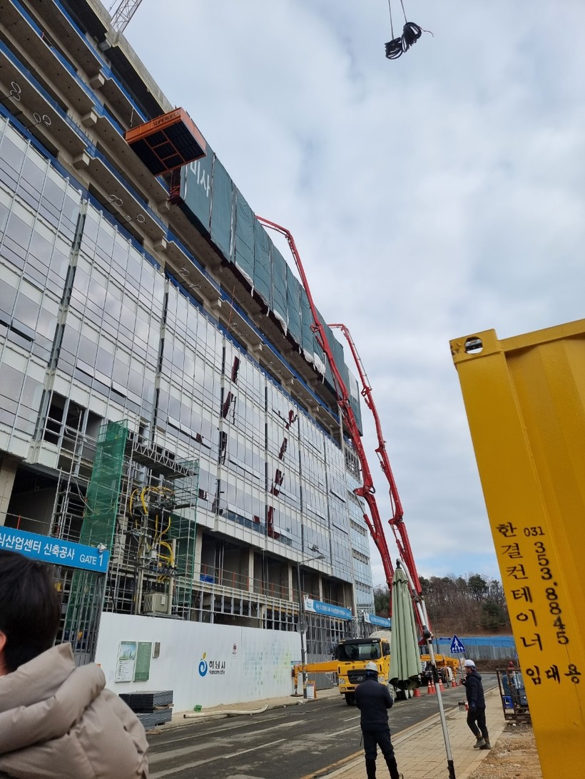 이들은 직장 동료로 이날 오후 2시경 점심식사 후 경기도 하남 더 프론트 미사 지식산업센터 공사현장 옆 인도를 걸어가다가 물에 젖은 시멘트를 머리와 어깨, 옷에 맞았다.
