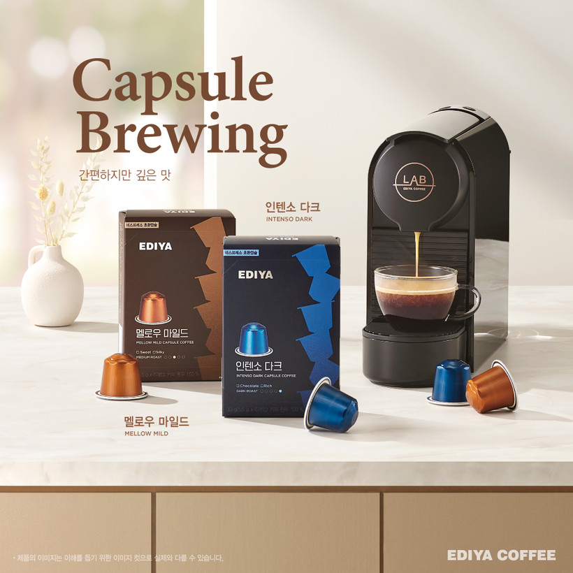 이번 캡슐커피 2종은 △멜로우 마일드 △인텐소 다크 두 가지 블렌드로 구성됐다. ‘멜로우 마일드’는 견과류와 밀크 초콜릿의 부드러운 조화로 깔끔하면서도 은은한 맛을 느낄 수 있다. 반면 ‘인텐소 다크’는 깊고 진한 다크 초콜릿의 풍미와 스모키한 아로마가 어우러져 강렬한 여운을 남기는 것이 특징이다. 두 제품 모두 가정과 사무실에서 고급스러운 커피 경험을 선호하는 소비자들을 위해 기획됐다.