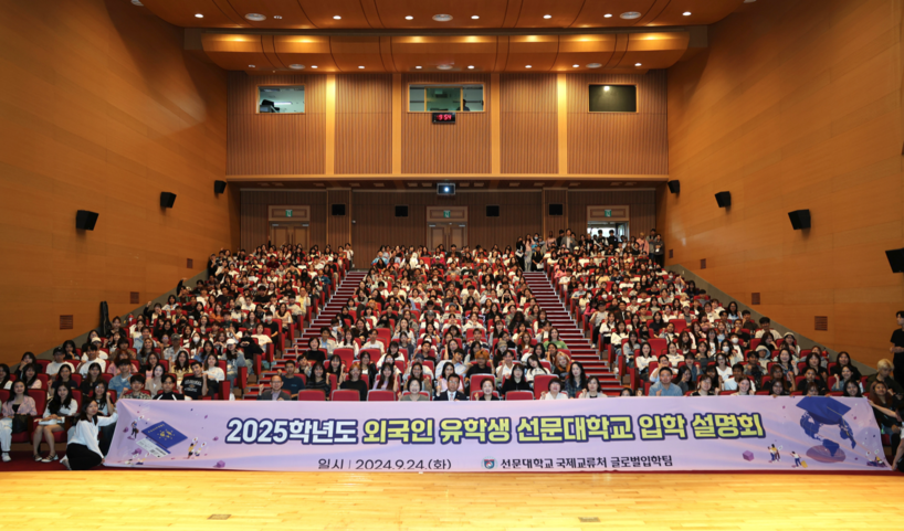 선문대는 지난 24일 아산캠퍼스에서 한국어교육원생 37개국 806명을 대상으로 2025학년도 외국인 유학생 입학 설명회를 성황리에 마쳤다고 25일 밝혔다. 이번 설명회는 외국인 유학생들의 입학 준비와 선문대의 다양한 학과를 소개하기 위해 마련된 자리로 유학생들의 많은 관심 속에서 진행됐다.