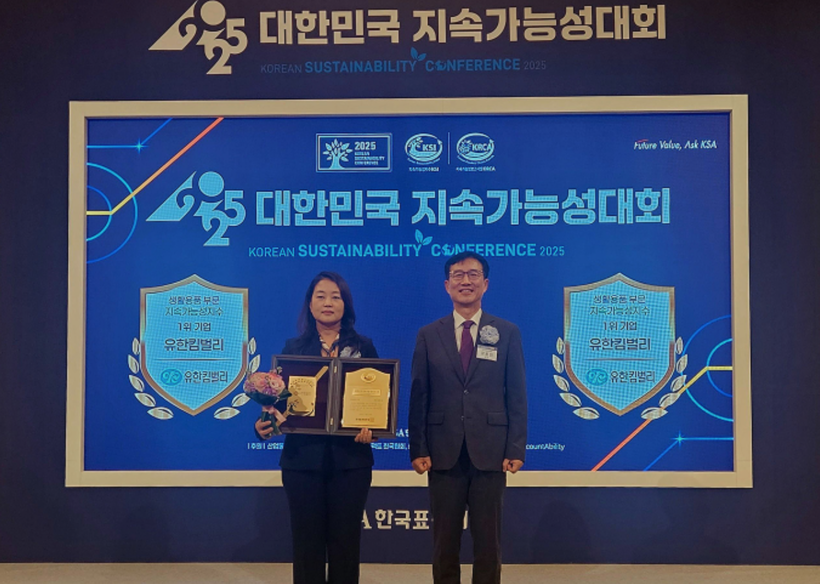 [일요주간 = 엄지영 기자] 유한킴벌리(대표이사 사장 이제훈)는 26일 ‘2025 대한민국 지속가능성대회’에서 대한민국 지속가능성 지수(KSI, Korean Sustainability Index) 생활용품 부문에서 15년 연속 1위를 달성하고 글로벌 공시 가이드라인에 부합하는 보고서로 제조부문 지속가능성보고서상(KRCA, Korean Readers’ Choice Awards)을 14회째 수상, 국내 지속가능경영 선도 기업임을 공인받았다.