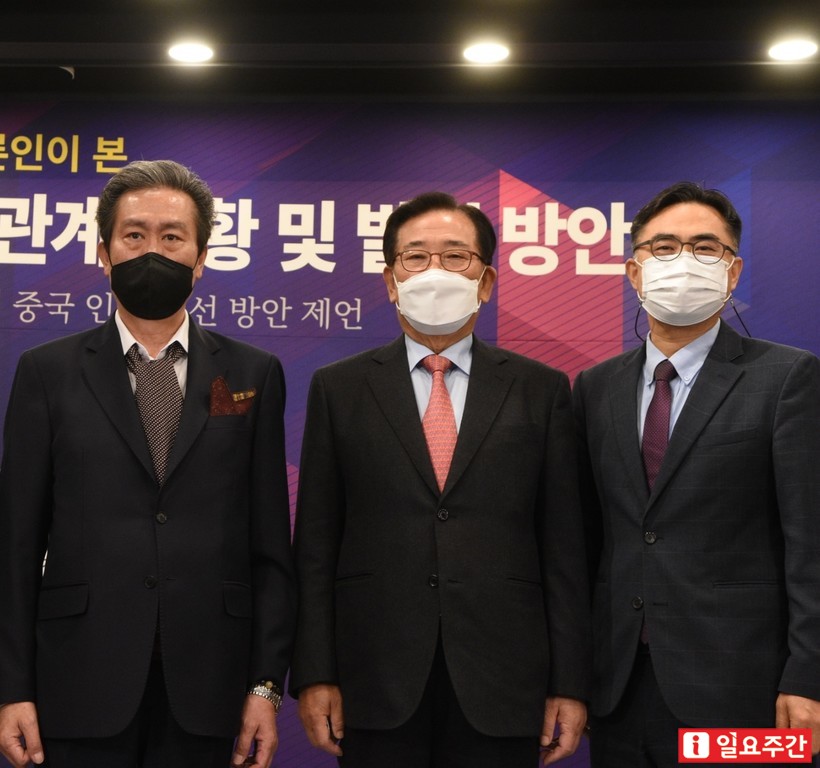 ▲ 왼쪽부터 포럼을 개최한 한중글로벌협회 강성재 부이사장, 이사장 박준영 前 전라남도 도지사, 우수근 회장