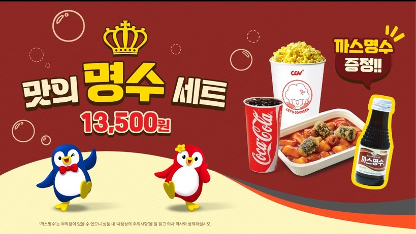 이번 프로모션은 4월 28일부터 5월 11일까지 2주 간 CGV 용산아이파크몰점에서 진행된다. 행사 기간 동안 해당 매점에서 ‘씨네밀 세트’를 구매한 고객에게는 제일헬스사이언스의 탄산계 액상 소화제 ‘까스명수액’ 1병이 증정된다.