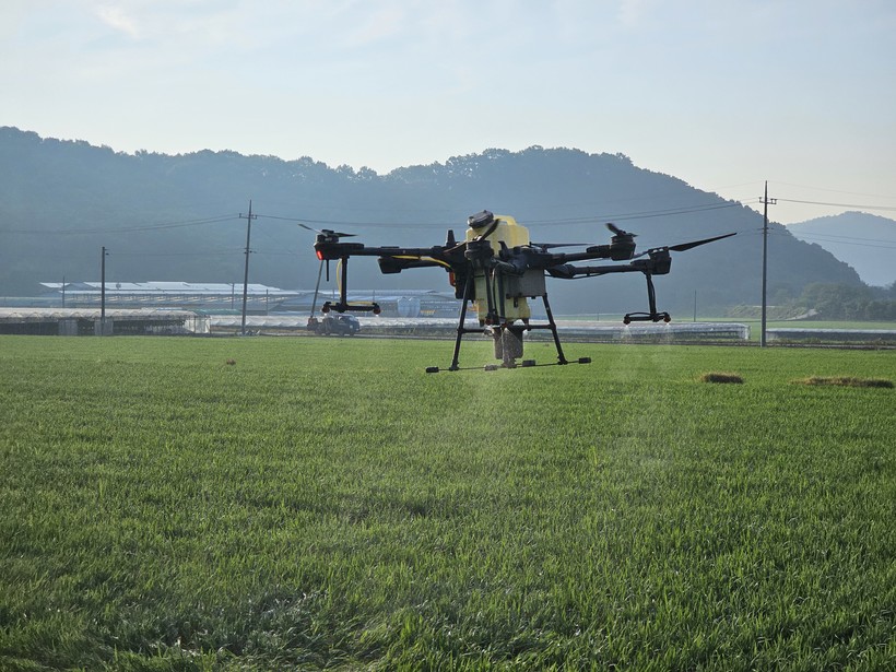 ▲ 김천시, 벼 병해충 드론 활용 공동방제 호응(사진=김천시) |