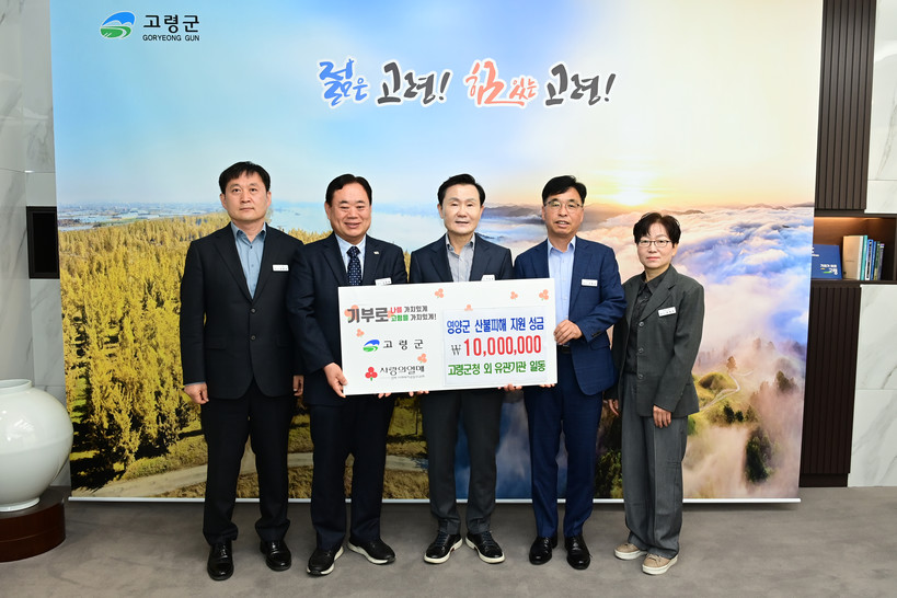 [일요주간=최부건 기자] 고령군(군수 이남철)은 대형 산불 피해를 입은 영양군의 신속한 복구 지원을 돕고자 고령군청 직원들의 따뜻한 마음과 관내 기관·단체 회원들의 위로와 응원을 담은 성금 1,000만원을 전달하였다.