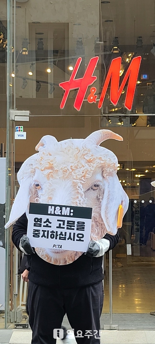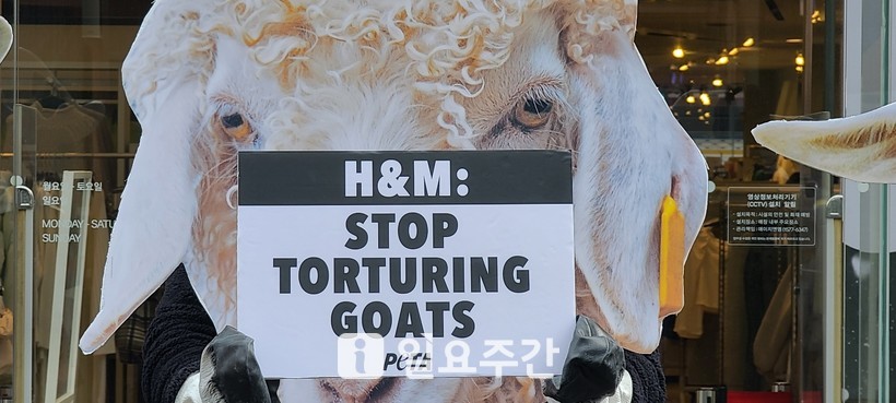 PETA는 “동물들이 신체부위를 절단 당하며 생산되는 캐시미어와 모헤어 제품에 대한 판매 중단 약속을 H&M이 철회했다 ”며 “동물보호 지지자들이 대형 염소 가면을 쓴 채 쇼핑객들에게 H&M이 약속을 지킬 때까지 구매를 피할 것을 권고하는 집회를 열었다”고 밝혔다.