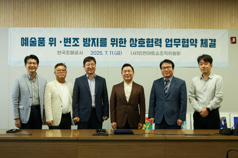 [일요주간=김영란 기자] 한국조폐공사(사장 성창훈, www.komsco.com)는 7월 11일 (사)인천아트쇼조직위원회와 ‘문화・예술분야 위・변조방지 기술 홍보’를 위한 업무협약을 체결했다. 이날 협약식에는 성창훈 조폐공사 사장과 (사)인천아트쇼조직위원회 정광훈 이사장을 비롯한 양 기관 관계자들이 참석했다.