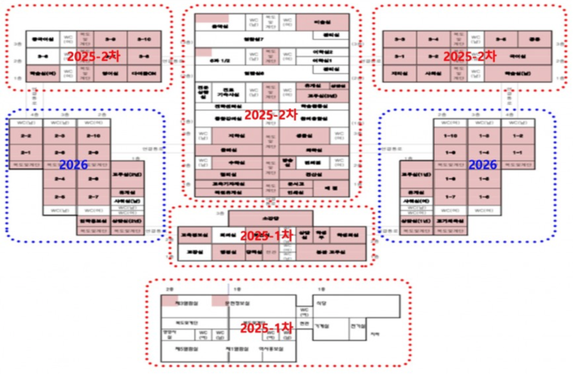 학교 관계자는 “학교 건물이 1·2·3학년동, 관리동 등으로 분리돼 있어 학생들이 생활하는 학년동은 방학 중에 시공하고 부득이하게 학기 중에는 행정실·교무실 등 관리동 일부만 진행했다”고 설명했다.