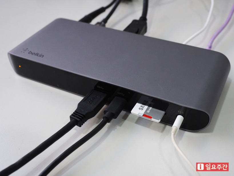 | ▲ 벨킨 썬더볼트 3독 프로는 USB-C포트밖에 없는 노트북을 위한 최고가 제품이다 (사진=지혜수 기자) |