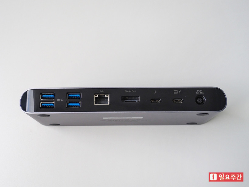 벨킨의 자랑인 썬더볼트 3 독은 후면에 USB-A 3.0 포트를 4개 제공한다. 그 옆에는 안정적인 유선 네트워크 연결이 가능한 기가비트 이더넷 포트가 있고 모니터 연결에 사용되는 디스플레이 포트(DP)가 있다. DP는 4K모니터 2대를 붙일 수 있는 고해상도를 지원하는 모니터 연결방식으로 8K 싱글모니터도 연결이 가능하다.