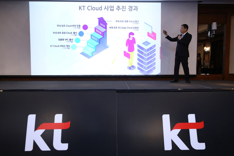 ▲KT 경영진 기자간담회에서 발표하는 구현모 대표 (이미지=뉴시스) |
