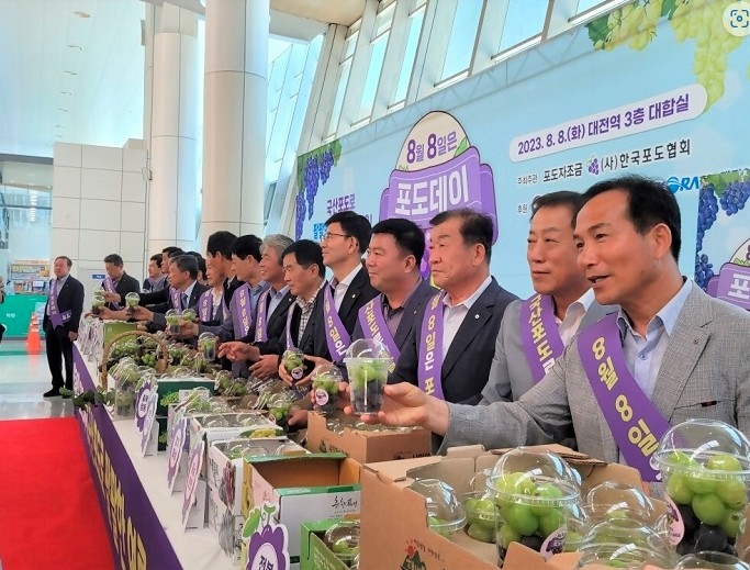 [일요주간=조무정 기자] 농협경제지주와 (사)한국포도협회는 8월 8일 포도데이를 기념하여 대전역에서「2023 포도데이 나눔행사」를 실시했다.