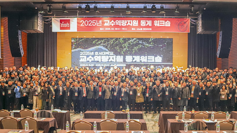 호서대학교(총장 강일구)는 전체 교원이 함께하는 ‘2025학년도 교수역량지원 동계 워크숍’을 19일까지 1박 2일로 소노벨천안에서 개최했다고 밝혔다.