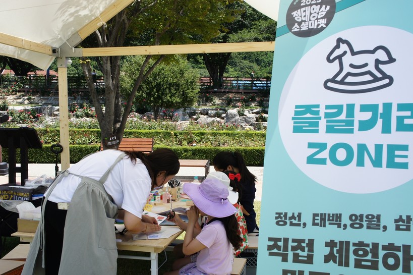 정선.태백.영월.삼척의 소상공인과 로컬크리에이터 약 40여팀이 참가하는 ‘정태영삼 소셜마켓’에는 ▲로컬 농산품 부스 ▲로컬 먹거리 부스 ▲살거리 부스 ▲만들기 체험 부스 등이 조성돼 연휴를 맞은 고객들을 대상으로 다양한 경험을 제공한다.