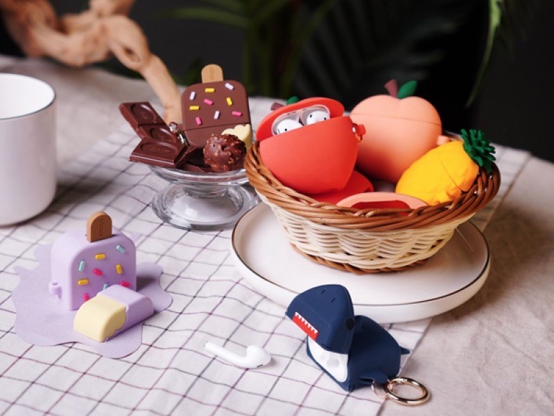 알록달록한 막대 아이스크림 디자인의 아이스크림 케이스는 라벤더, 초코브라운, 민트, 러블리핑크 등 사랑스러운 네 가지 색상으로 출시됐다. 복숭아와 파인애플 디자인의 케이스는 에어팟 케이스의 디자인을 귀여운 소품으로 바꿔 놓는다.