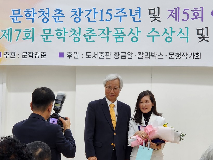| ▲ 2023년 제7회 [문학청춘] 작품상 수상식에서 유자효 선생님과 함께 |