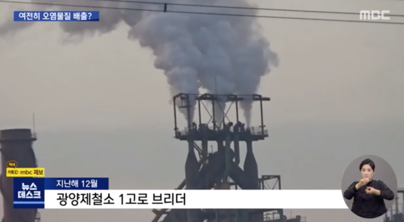 취재 과정에서 인터뷰를 진행한 환경 활동가 A씨는 "(MBC에 보도된 영상은) 저희도 제보를 받았다"며 "광양제철소가 여전히 오염물질을 계속 뿜어내고 있다"고 주장했다.