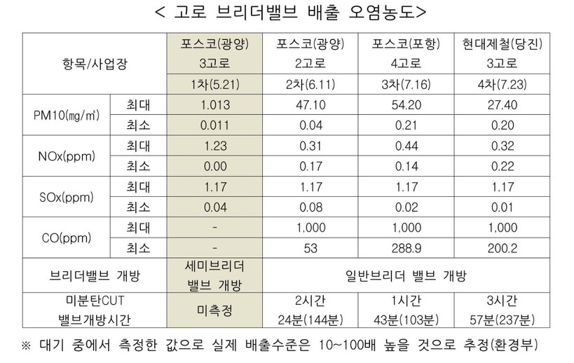 아울러 “포스코는 당초 환경부 회의에서 '세미브리더'는 원료 투입을 위한 압력 조절용 이지 오염물질 저감설비는 아니라고 밝혔다”며 “국내 제철소에도 설치돼 있지만 휴풍(고로 정비에 앞서 고열의 공기 주입을 멈추는 작업) 때 먼저 사용할 경우 용광로 내부 압력 상승으로 폭발 위험이 있어 그동안 사용한 적이 없다고 설명했다”고 전했다.