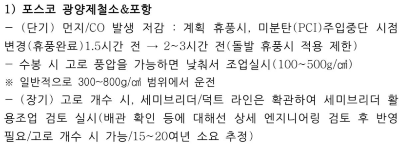 당시 환경부는 “연료로 사용되는 석탄가루 투입을 조기에 중단하고 용광로 내 압력 조정을 위한 풍압을 낮게 조정하는 등 작업절차 개선을 통해서도 먼지 배출을 최소화하기로 했다”고 밝혔다.
