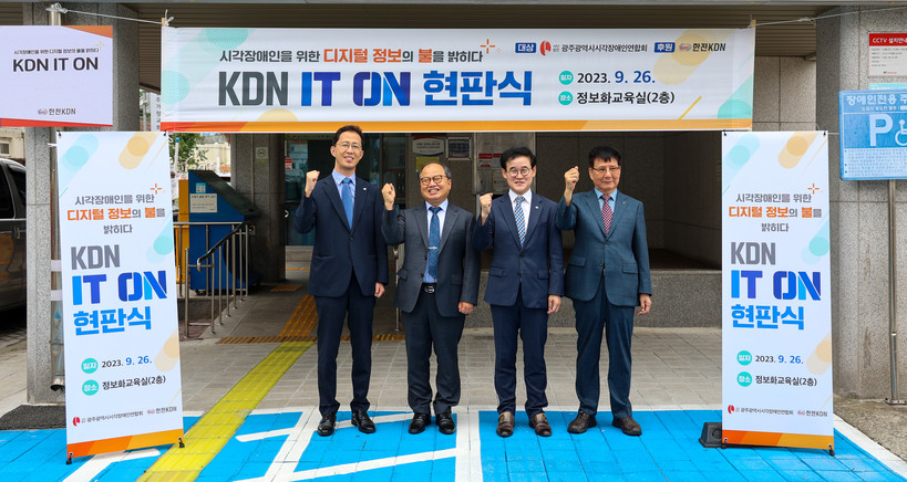 [일요주간=김영란 기자] 한전KDN(사장 김장현)이 26일 광주광역시 남구 소재 광주시각장애인연합회 내 복지관에 제2호 ‘KDN IT ON’을 기증하고 현판식을 개최했다.