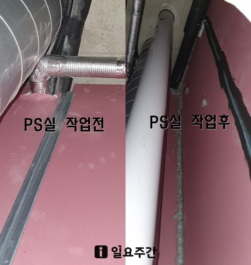 이러한 내용을 센터 내 고객센터에 접수하니, 3월 16일 김 모 담당자가 방문했다. 제보자에 따르면 당시 김 모 담당자는 “아래와 양옆 세대가 입주하지 않아서 춥다”라는 식으로 설명했다고 한다. 담당자는 익일 PS 실(배관들의 수직관)과 양수기함 내 석고판 틈새에 실리콘을 재시공했다.