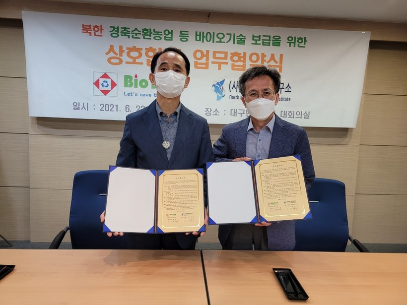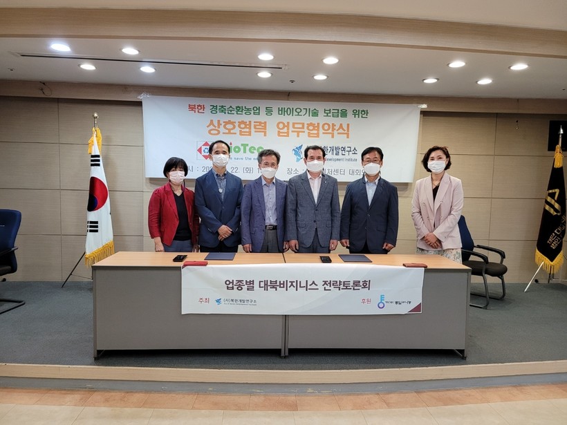 북한개발연구소는 먼저 농업분야는 농업인이 가축분뇨를 사용해 작물을 기르고 볏짚 등 작물의 부산물을 가축의 사료로 사용하는 경축순환 농업의 보급과 바이오기술 등을 활용한 6차 산업 시범사업 등을 추진중인 (주)바이오텍의 대표인 박덕수 박사를 비롯해 특수직물 제조업체인 (주)금화텍스 이상봉 대표를 만나 대북교류에 필요한 지식정보를 교류하는 업무협약식을 가졌다.