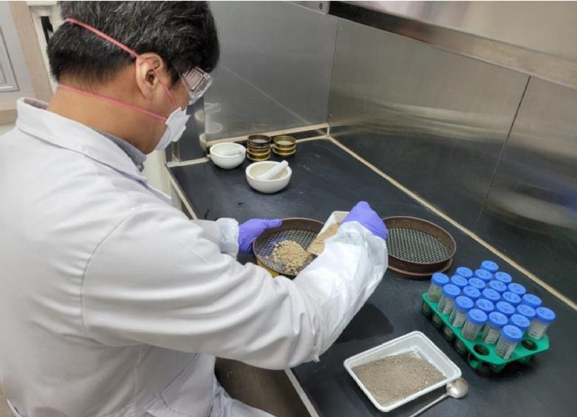 ▲ 토양 시료 전처리 장면(사진=부산시) |