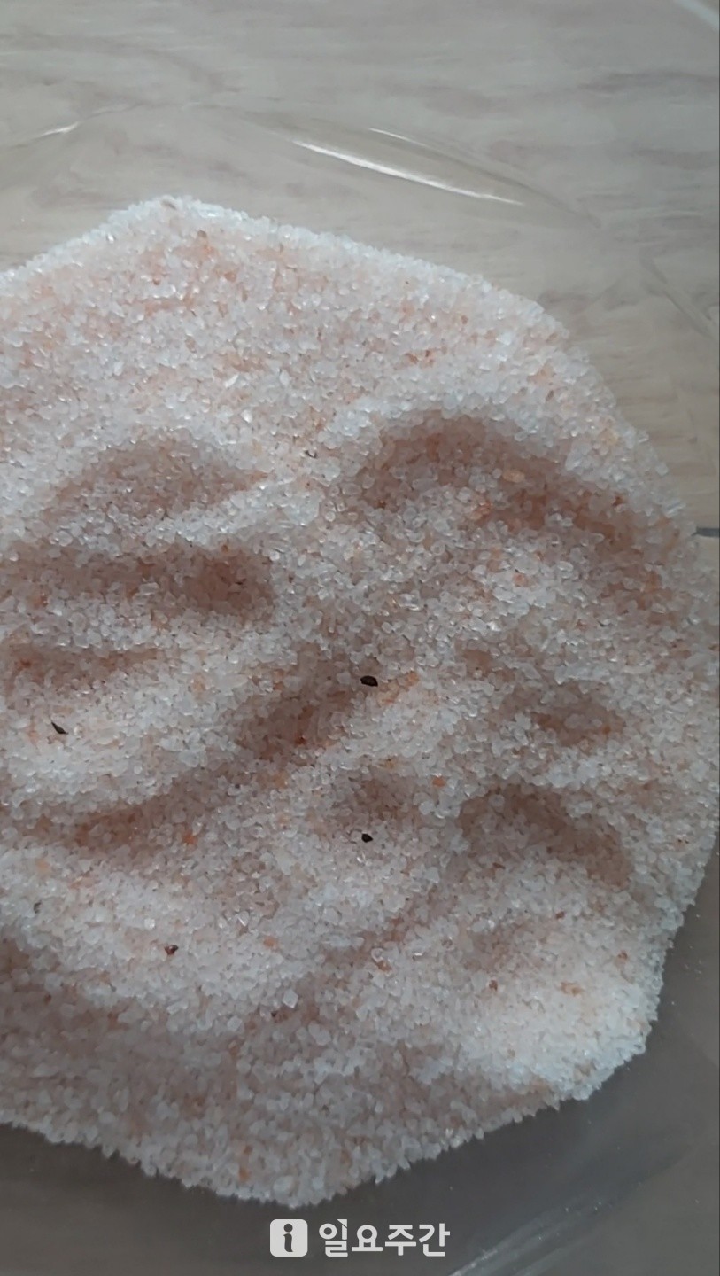 | ▲G마켓 내에서 판매되고 있는 A업체의 수입 핑크솔트에서 쇳가루가 나왔다. 현재 해당 제품은 소비자의 클레임 제기 이후에도 여전히 판매되고 있어 논란이 일고 있다.(사진=제보자 제공) |