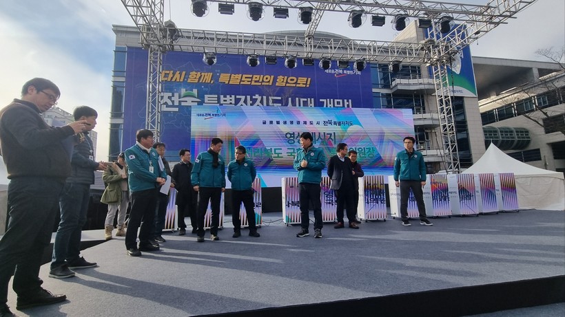 [일요주간=김영란 기자] 전북도가 128년의 역사를 새기고 더 특별한 전북특별자치도로 대전환해 비상하기 위해 추진하는‘특별자치도 성공 출범행사’에 대한 민·관 합동안전점검을 한국소리문화의 전당 모악당과 도청 야외광장에서 1월 16일 실시했다.